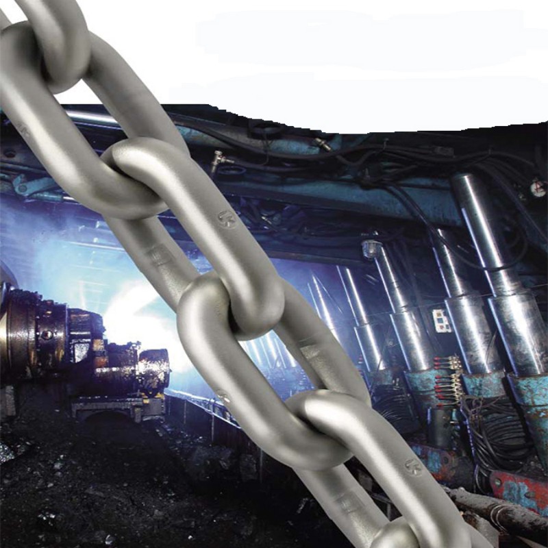 Горнодобывающая круговая цепь является основным компонентом передачи механизированного горного оборудования угольных шахт, высокопрочным тяговым компонентом, специально разработанным для тяжелого оборудования, такого как скребковый конвейер и угледобывающая машина.Продукт изготовлен из передовой легированной стали, такой как 23MnNiCrMo54, 25MnV и т.д. Благодаря прецизионной формовке цепи и процессу закалки и отпуска, он гарантирует, что кольцо цепи имеет прочность на растяжение класса C и выше (≥1600MPa), и может выдерживать экстремальные условия нагрузки различных спецификаций от 34 мм до 152 мм.Продукция охватывает полный диапазон размеров от 10x40 до 48x152 мм и подходит для подземных подъемных систем, устройств транспортировки руды и оборудования для открытых горных работ, что может гарантировать непрерывную и эффективную работу 10 000 тонн добычи угля в день, в среднем более 8 000 часов безаварийной работы.Строго соблюдая международный стандарт DIN22252, каждая партия продукции прошла трехмерную дефектоскопию и испытание динамической нагрузкой, обеспечивая надежную гарантию безопасного производства в шахтах.